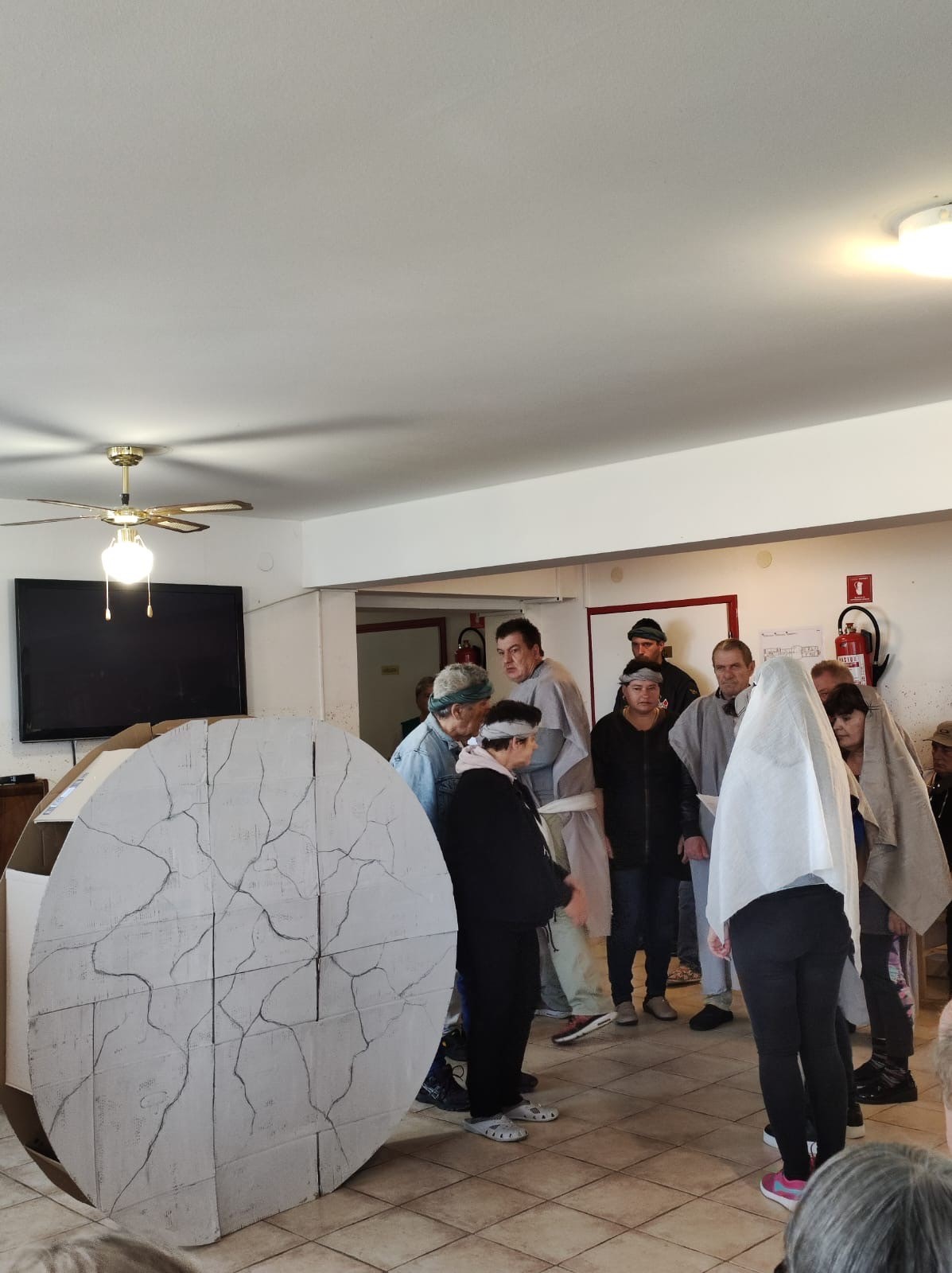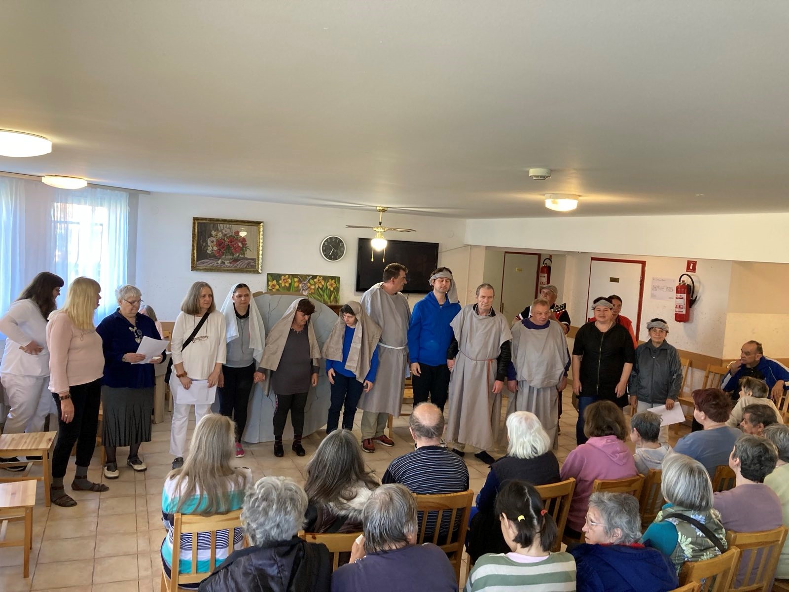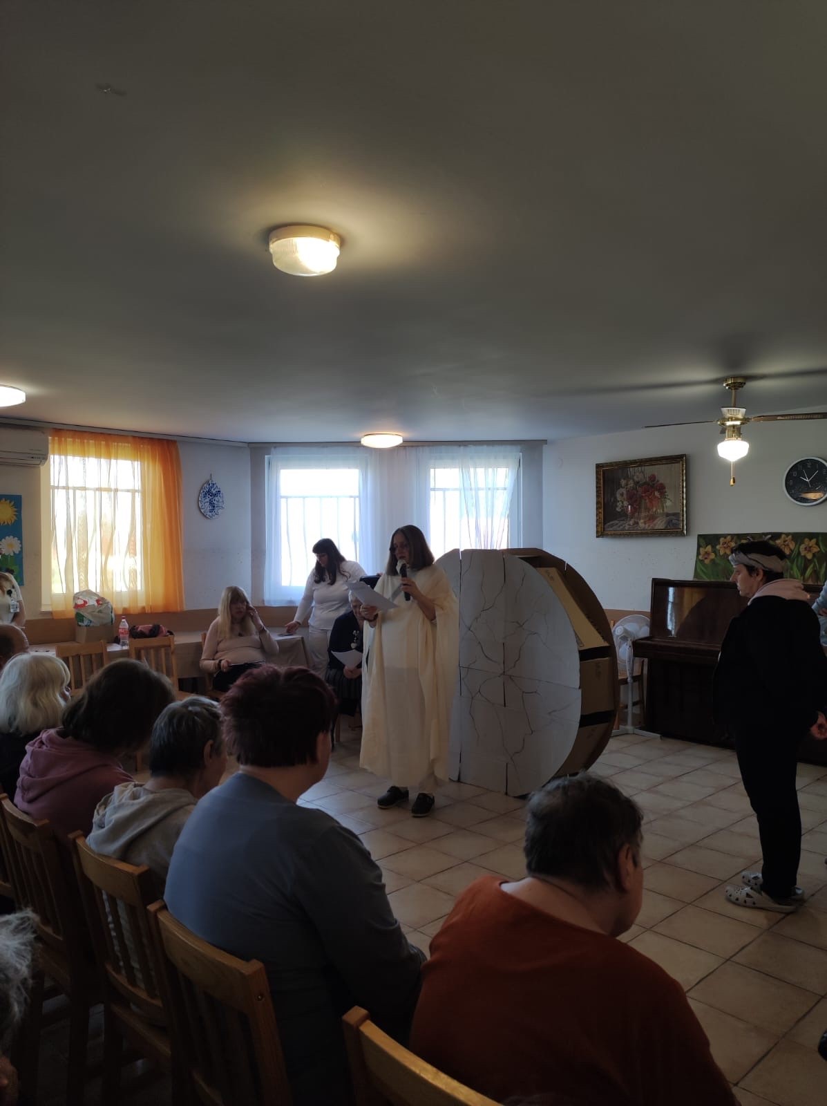 Travanj nam prolazi u znaku blagdana Uskrsa i aktivnostima vezanim uz Uskrs. Korisnici su provodili vrijeme u izradi čestitaka, dramskim i likovnim radionicama u kojima smo se pripremali za priredbu u izvedbi korisnika Doma. Sve prisutne je jako razveselio igrokaz „Uskrsnuće“ koji nam je približio duh blagdana. Svima je omogućeno ispunjavanje vjerskih potreba kroz organizirane ispovijedi, sv. mise i križni put.